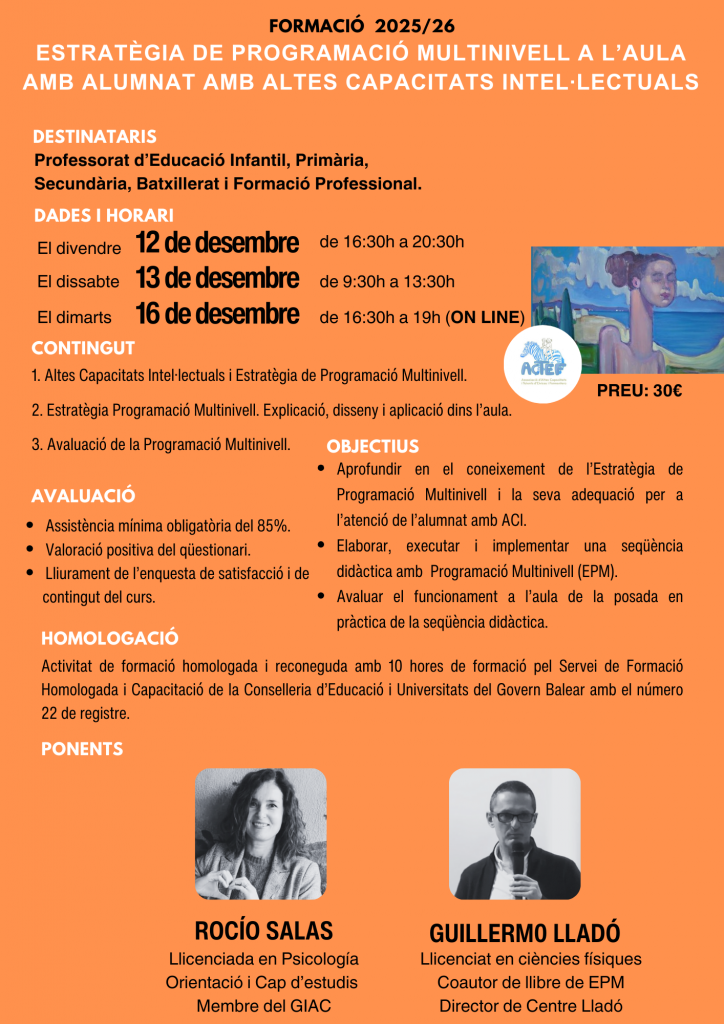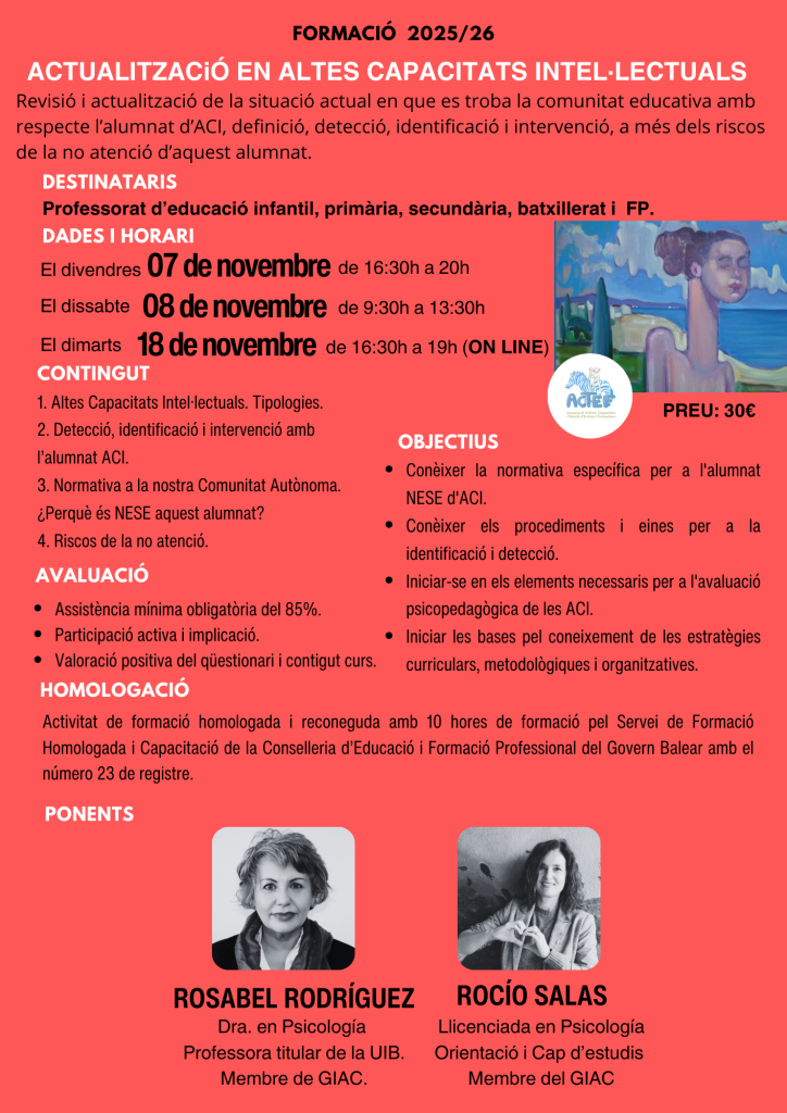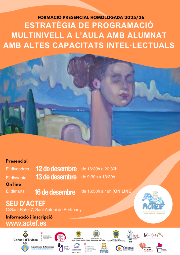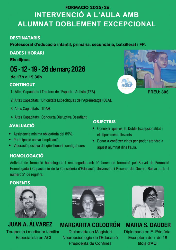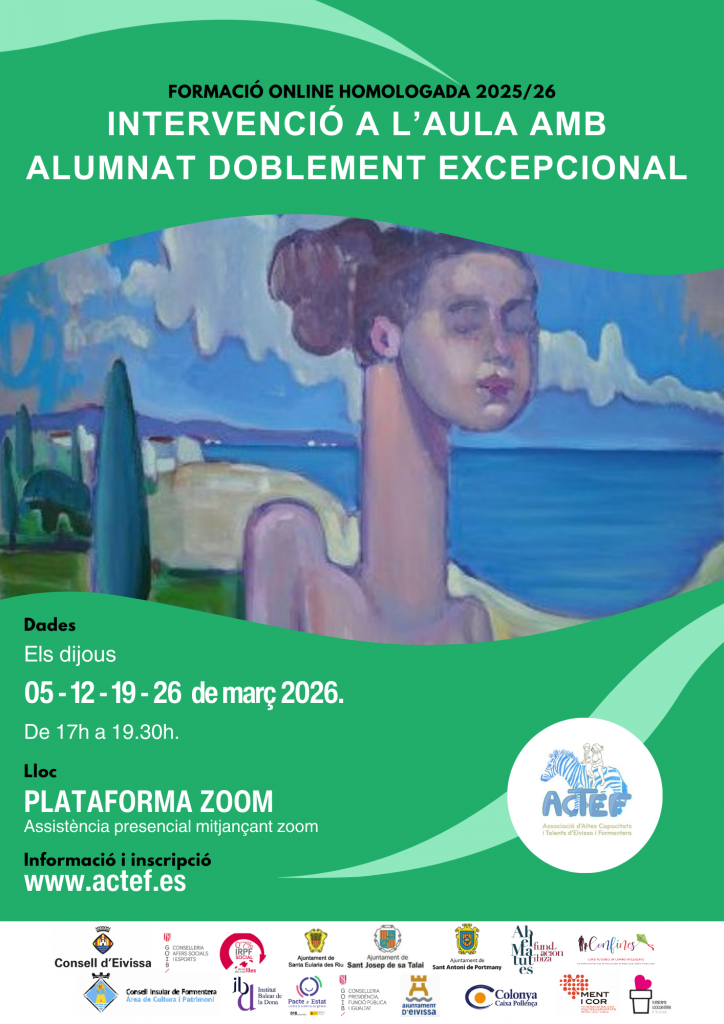 La Consellería de Educación del Govern Balear ha homologado una nueva formación especializada dirigida a docentes comprometidos con la inclusión educativa. Esta formación será impartida por ACTEF (Associació d´Altes Capacitas d´Eivissa i Formentera).