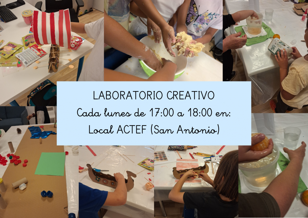 Laboratori Creatiu és un taller de treball emocional i desenvolupament d’habilitats socials a través de les activitats creatives. Viatjarem en el temps per a conèixer civilitzacions antigues, descobrirem éssers mitològics, desxifrarem enigmes de la naturalesa i moltes coses més sempre partint de la nostra creativitat. El taller busca encuriosir i l’interès de els\as nens\as per diverses àrees del coneixement i habilitats a través del joc creatiu i la imaginació.