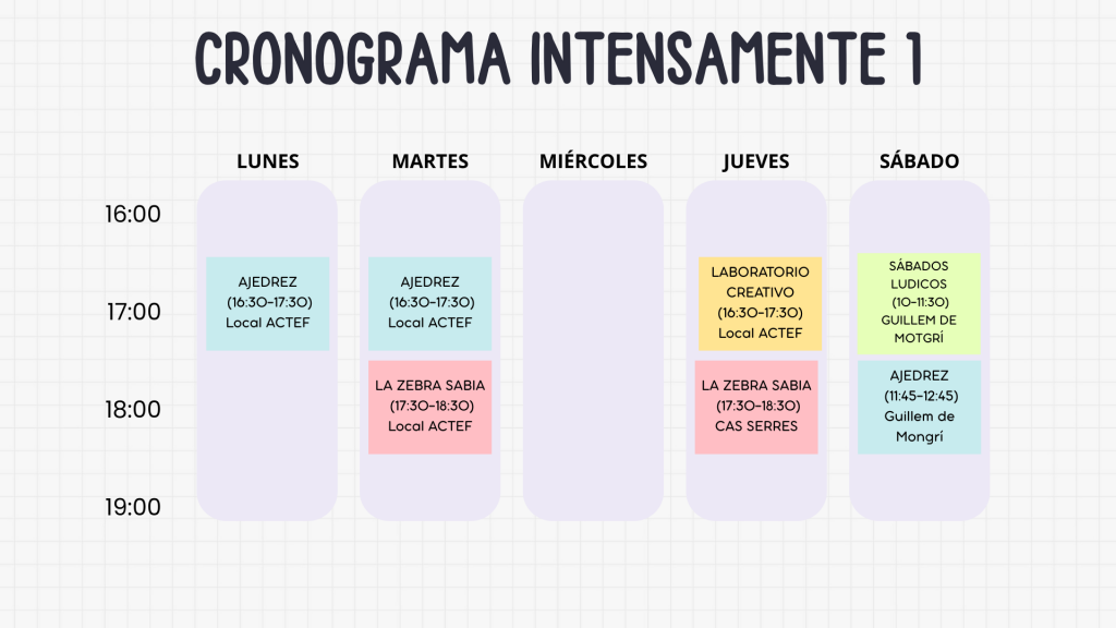 Gruopo 1 lunes de 16.30h a 17.30h Gruopo 1 martes de 16.30h a 17.30h
