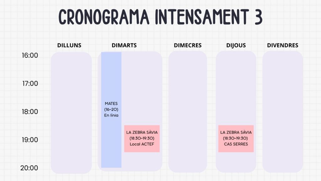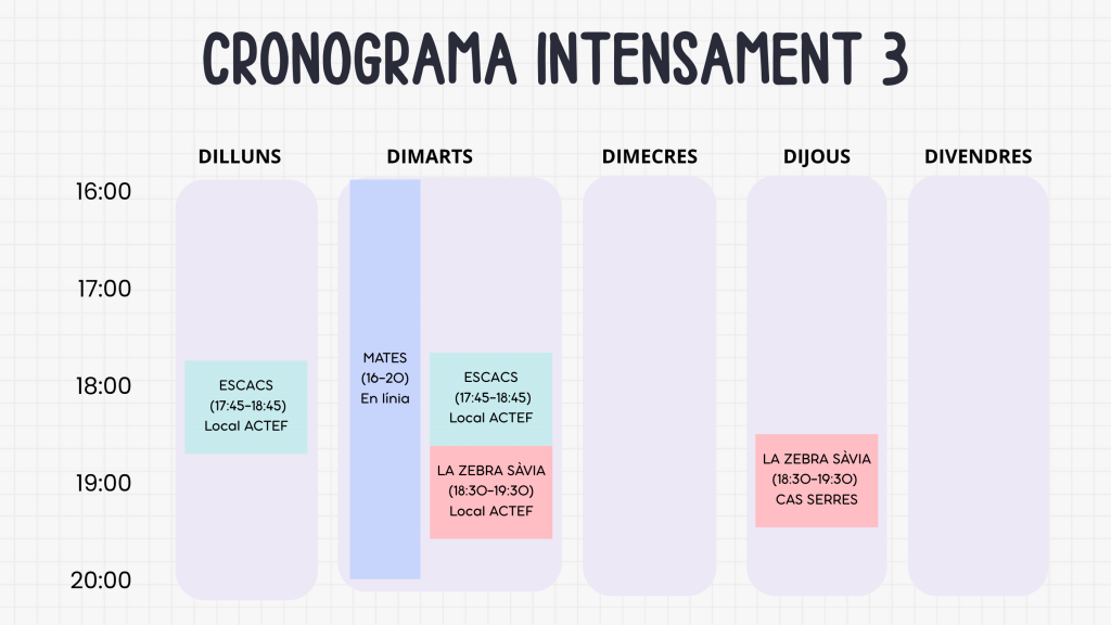 - És necessari un COMPROMÍS de pràctica perquè tot l’alumnat gaudeixi de l’activitat.