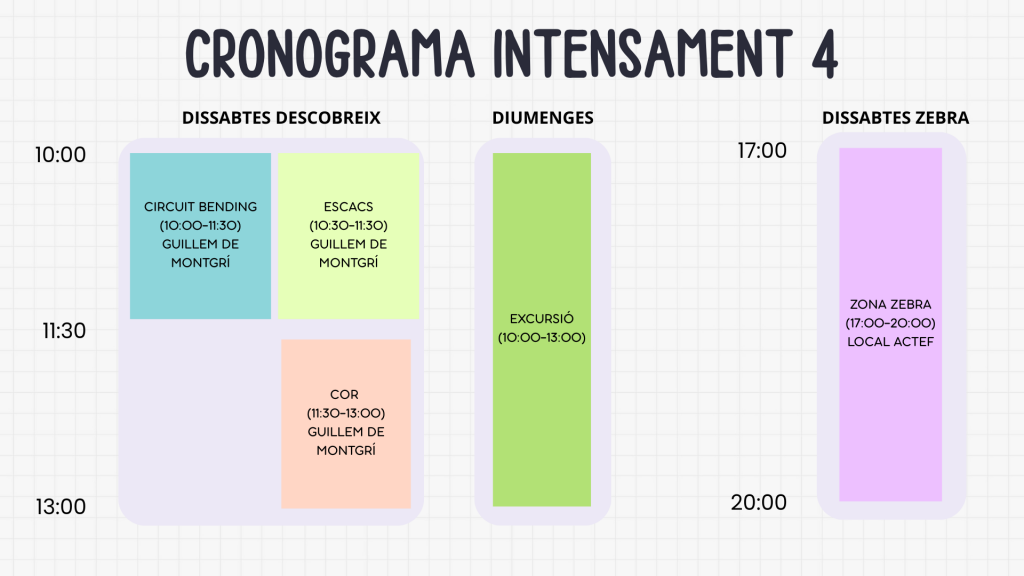 Al llarg del curs els introduirem en diferents disciplines dins de la creació d’instruments sonors com són el CircuitBending, el món del sintetitzador *DIY, la programació amb *PureData*, o la construcció d’efectes de so amb els quals poder processar instruments més tradicionals, d’aquesta manera es pretén promoure la curiositat com a motor per a l’adquisició de coneixements i es fomenta el pensament creatiu per a la resolució de problemes.ler un expert@ diferent