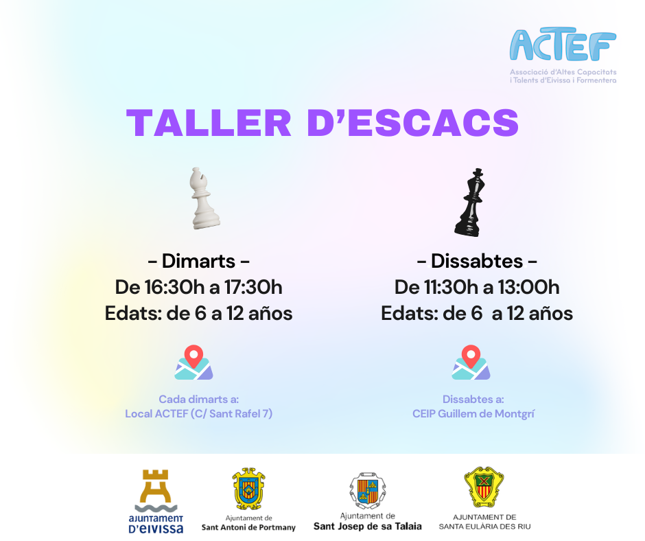 Dilluns i dimarts de 16.00 a 17.30 Seu de ACTEF, Sant Antonio