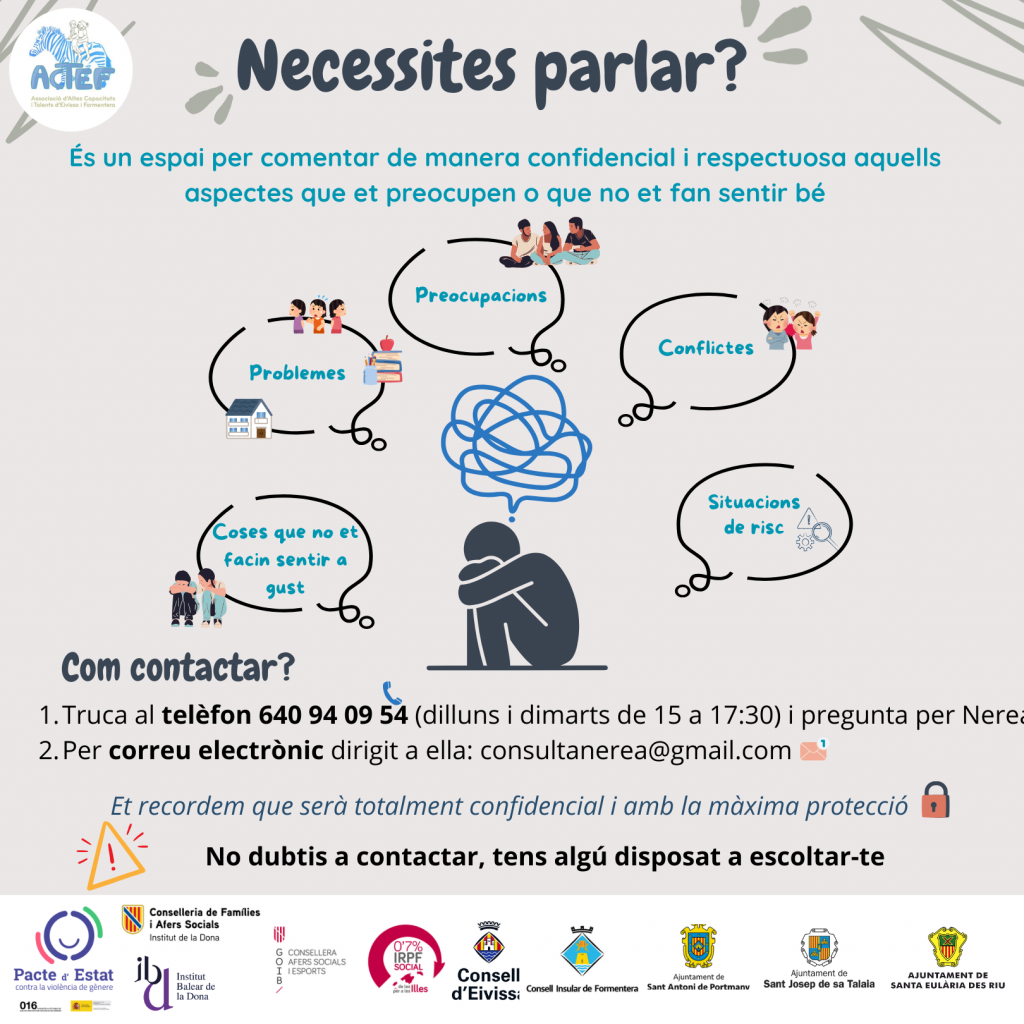 Es tracta d’un servei ofert per ACTEF on es pretén oferir un espai als joves i les seves famílies al qual puguin acudir en cas de considerar-se embolicats en una situació de risc o vulnerabilitat, ja sigui a la llar o en el centre educatiu. Per tant, es planteja com una oportunitat de brindar un espai segur i confidencial per a l’orientació i atenció dels usuaris, amb la intenció de desenvolupar una prevenció sobre conductes de risc i intervenció primerenca en casos de conflictivitat o de victimització.