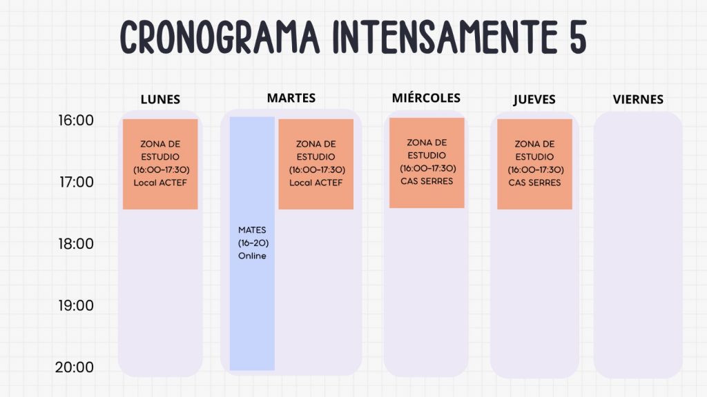 Este taller consiste en un primer trimestre sesiones estructuradas donde se enseñan y practican diferentes estrategias para mejorar la capacidad de estudio de manera eficiente e individualizada y continuará los siguientes trimestres con un acompañamiento en los estudios. El enfoque está en personalizar el proceso de aprendizaje, teniendo en cuenta las necesidades, el estilo de aprendizaje y los objetivos de cada persona.