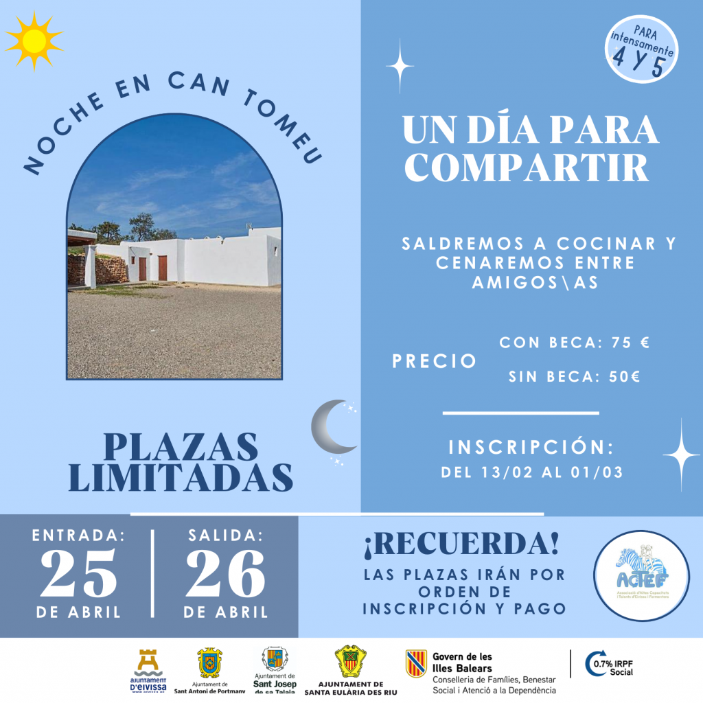 16:00 a 17:30: Lunes y Martes en el Local de ACTEF. Miércoles y Jueves en Cas Serres.
